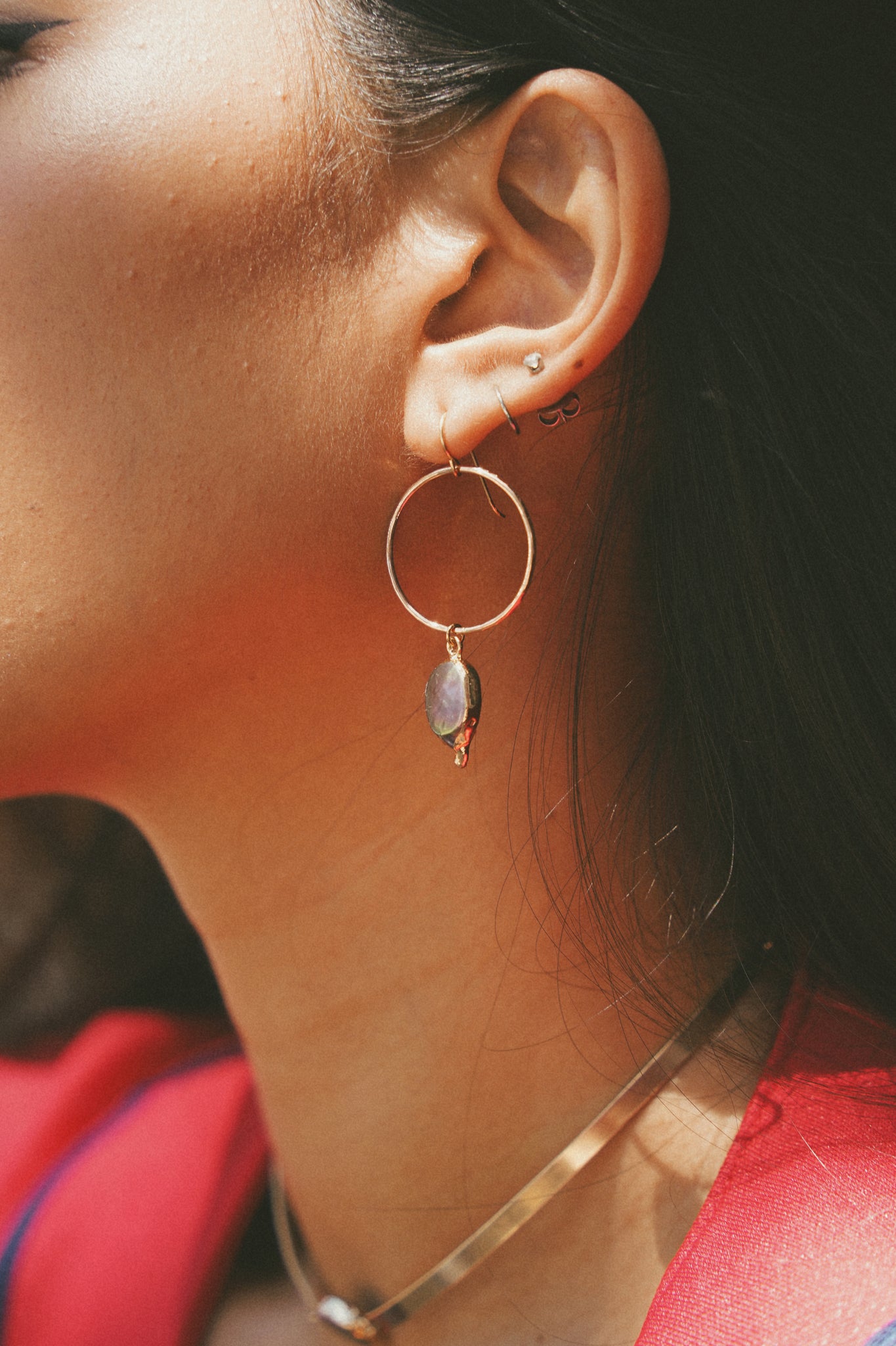 Mini Hoops: Our classic mini hoop style, now featuring these beautifully rare deep blue pearls. High quality 14k gold filled.