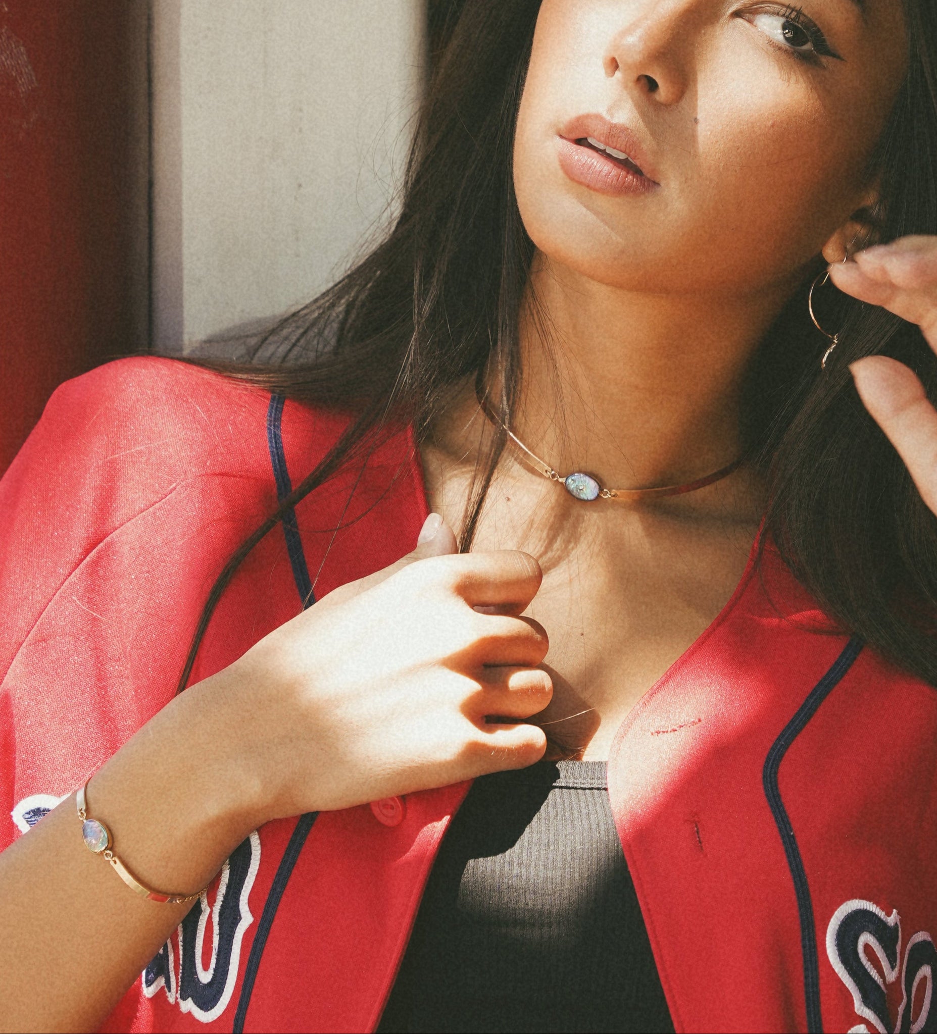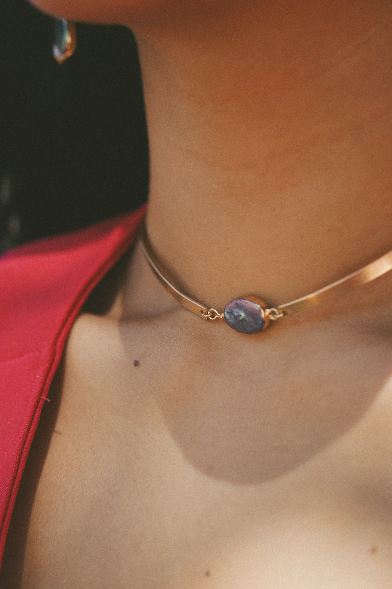 In this listing, we have 3 pieces available: Choker, Bracelet, Mini Hoops. You can purchase all three as a set or purchase pieces individually.